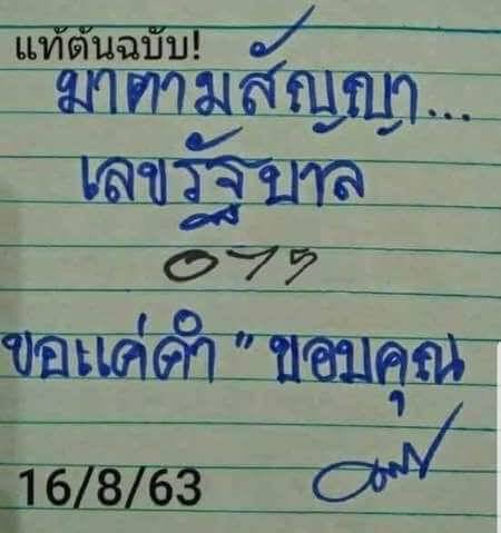 หวยไทยร ฐ 16 8 63 แนวทางหวยร ฐบาลงวดน เลขเด ดหวยสำน กด ง