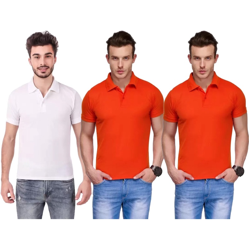 Solid Men White Orange Orange T Shirt Pack Of 3 Shopee India